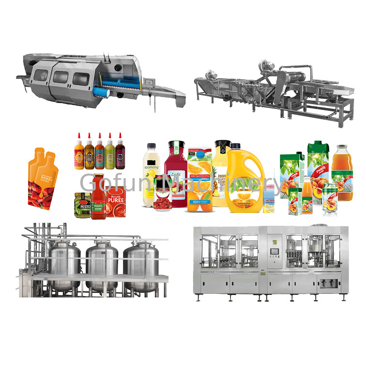 linha de produção de bebidas frutadas geralmente inclui os seguintes equipamentos e etapas do processo: