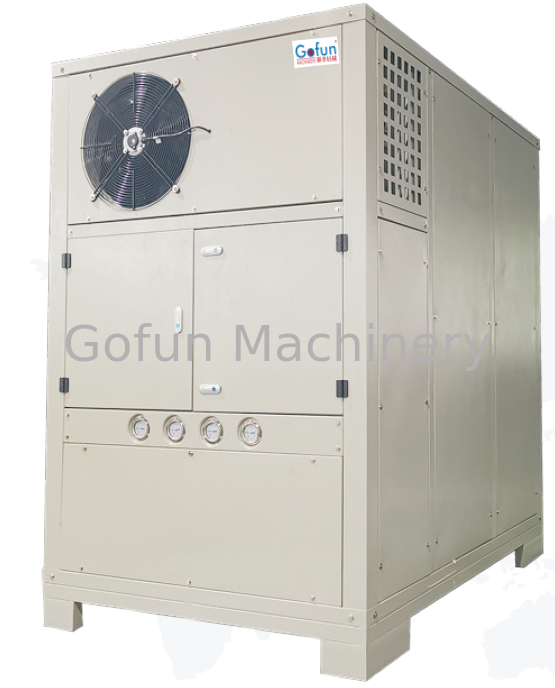 The drying room’s inside humid hot air will be send to the units return air pipe and flow into the unit through the negative pressure circulating fan; Through the high temperature side of the heat exchanger (heat release), First time to lower the air temperature and to increase the relative humidity rate for the unit cubic water; Then the air temperature will be lowered in Second time through the surface cooler. At that time, the relative humidity rate of the air already close to its own dew point temperature. Then Pass the evaporator to lower the temperature thirdly and To realize condensation and dehumidification after dehumidification,The moisture will be discharged from the water tank and drain pipe which are on the bottom of the evaporator.At this time, the circulating air becomes into a kind of low-temperature drying type cold air because of the condensation and the Relative humidity is reduced.Pass the air hose and back to the low temperature side(heat absorption) of the Full-effect heat exchanger.Then the high temperate and lower temperate exchange the heat.Makes the low-temperature cold air be heated first time and reduce the air relative humidity(heat recovery)Again pass though the condenser.To increase the air temperature and reduce the air relative humidity. Make it reach the temperature for dryer room use and form into the hot dryed air .Then be extracted by the Centrifugal fan and send into the dryer room